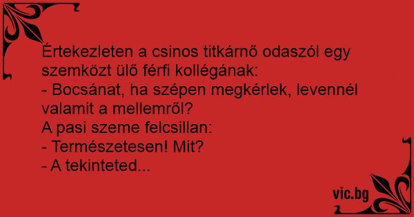 Értekezleten a csinos titkárnő odaszól egy szemközt ülő férfi kollégának: