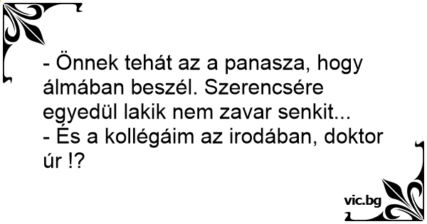- Önnek tehát az a panasza, hogy álmában beszél. Szerencsére egyedül lakik nem zavar senkit...