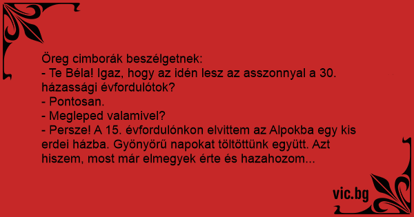 - Te Béla! Igaz, hogy az idén lesz az asszonnyal a 30. házassági évfordulótok?