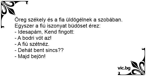Öreg székely és a fia üldögélnek a szobában. Egyszer a fiú iszonyat büdöset érez: