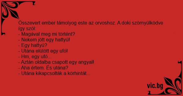 Összevert ember támolyog este az orvoshoz. A doki szörnyülködve így szól: