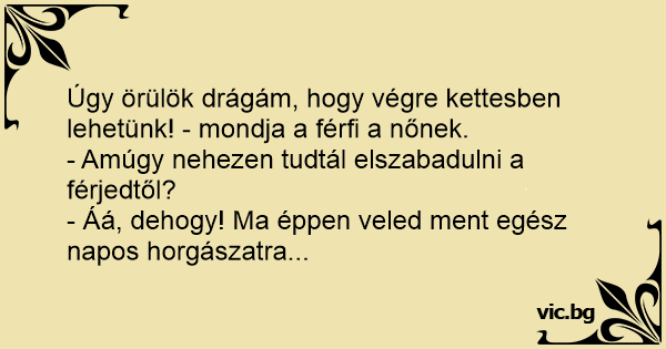 Úgy örülök drágám, hogy végre kettesben lehetünk! - mondja a férfi a nőnek.