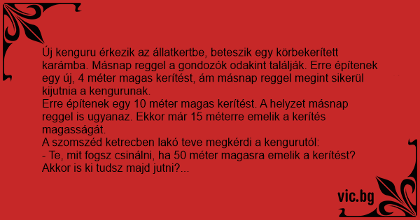 - Persze - válaszolja a kenguru, - de csak akkor, ha továbbra is elfelejtik bezárni a kaput...
