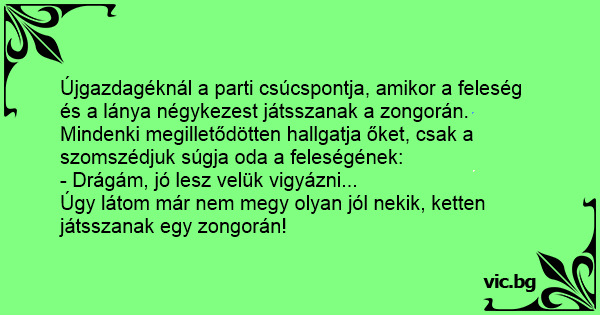 Mindenki megilletődötten hallgatja őket, csak a szomszédjuk súgja oda a feleségének: