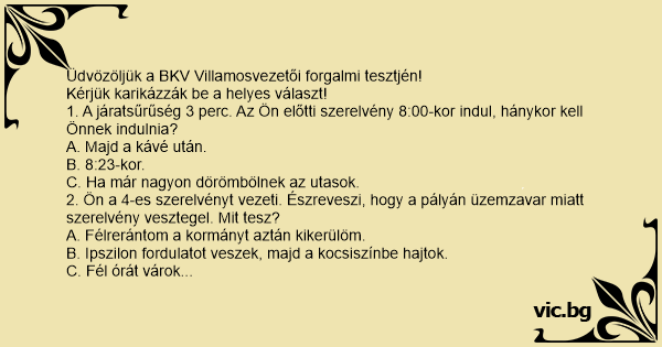 Üdvözöljük a BKV Villamosvezetői forgalmi tesztjén!