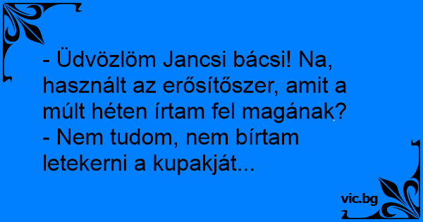 - Üdvözlöm Jancsi bácsi! Na, használt az erősítőszer, amit a múlt héten írtam fel magának?