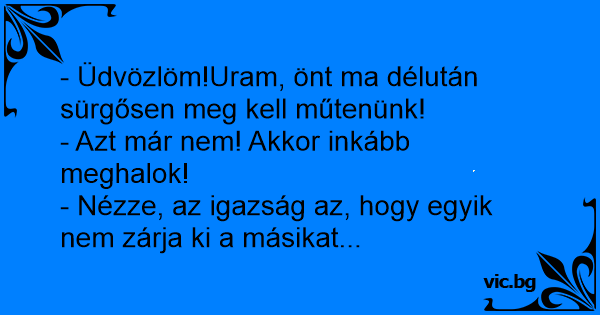 - Üdvözlöm!Uram, önt ma délután sürgősen meg kell műtenünk!