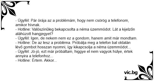 - Ügyfél: Pár órája az a problémám, hogy nem csörög a telefonom, amikor hívnak.