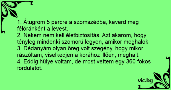 3. Dédanyám olyan öreg volt szegény, hogy mikor rászóltam, viselkedjen a korához illően, meghalt.