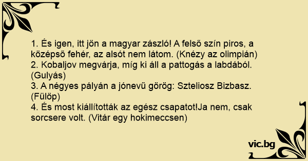 1. És igen, itt jön a magyar zászló! A felső szín piros, a középső fehér, az alsót nem látom. (Knézy az olimpián)