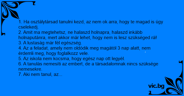 1. Ha osztálytársad tanulni kezd, az nem ok arra, hogy te magad is úgy cselekedj.