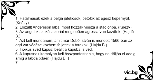 22. És most következzék a meccs! A riporter Fara..., de hisz az én vagyok. A mérkőzést Hajdú B. közvetíti. (Faragó)