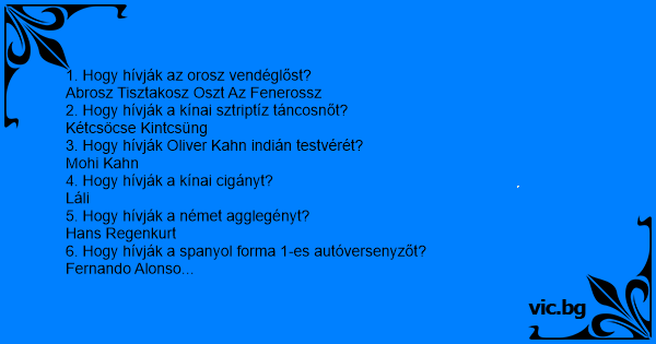 1. Hogy hívják az orosz vendéglőst?