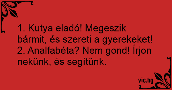 1. Kutya eladó! Megeszik...