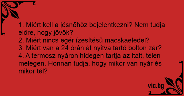 - "Страхотно нещо е тоя термос. През зимата държи чая топъл, а през лятото лимонадата студена!" - Да, само се чудя как термоса разбира кога е лято и кога зима?!