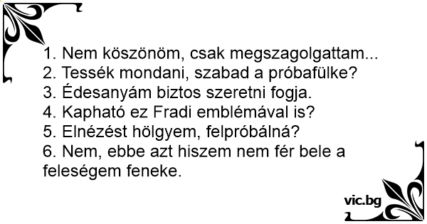 6. Nem, ebbe azt hiszem nem fér bele a feleségem feneke.