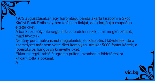 1975 augusztusában egy háromtagú banda akarta kirabolni a Skót Királyi Bank Rothesay-ben található fiókját, de a forgóajtó csapdába ejtette őket.