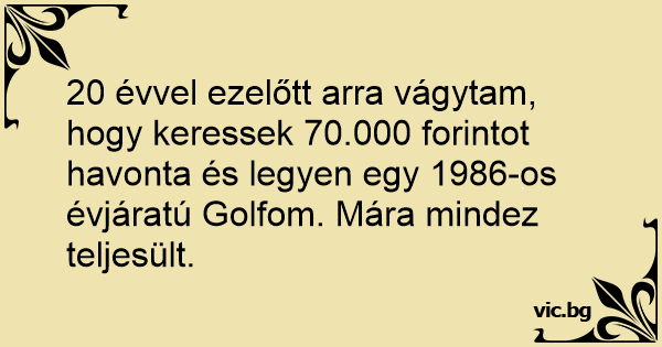 20 évvel ezelőtt arra vágytam, hogy keressek 70.000 forintot havonta és legyen egy 1986-os évjáratú Golfom. Mára mindez teljesült.