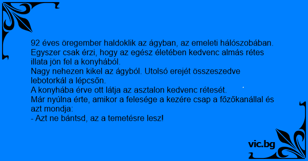 Már nyúlna érte, amikor a felesége a kezére csap a főzőkanállal és azt mondja: