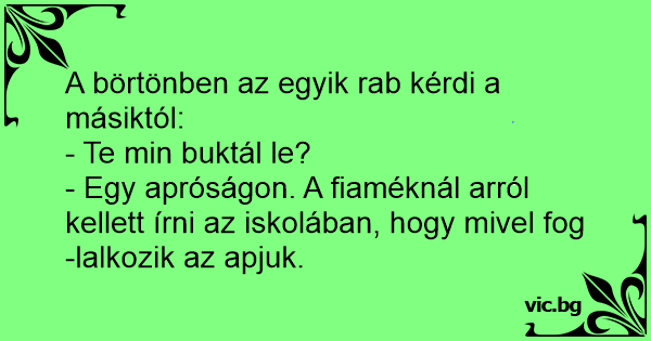 A börtönben az egyik rab kérdi a másiktól: