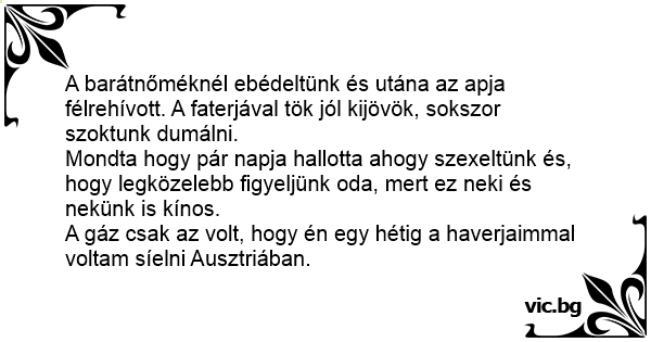 A barátnőméknél ebédeltünk és utána az apja félrehívott. A faterjával tök jól kijövök, sokszor szoktunk dumálni.