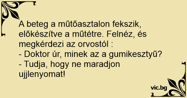 A beteg a műtőasztalon fekszik, előkészítve a műtétre. Felnéz, és megkérdezi az orvostól :