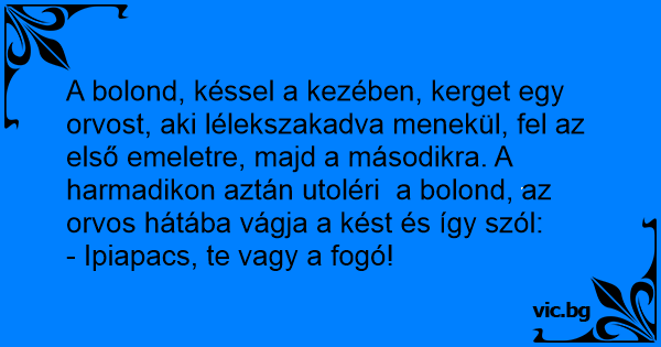 A bolond, késsel a kezében, kerget egy orvost, aki lélekszakadva menekül, fel az első emeletre, majd a másodikra. A harmadikon aztán utoléri a bolond, az orvos hátába vágja a kést és így szól:
