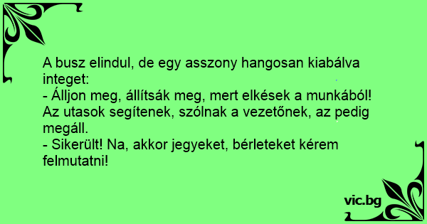 - Álljon meg, állítsák meg, mert elkések a munkából!