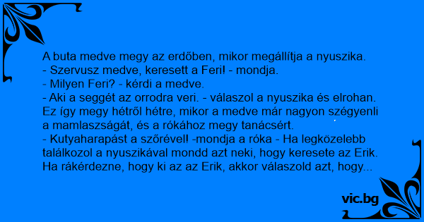- Szervusz medve, keresett a Feri! - mondja.