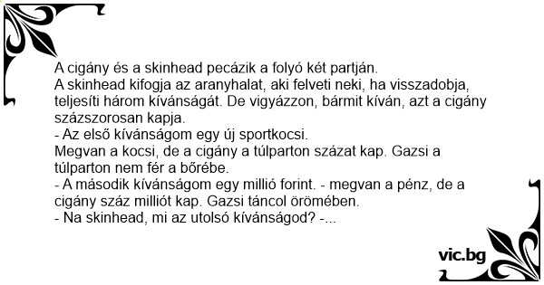 - Na skinhead, mi az utolsó kívánságod? - kérdi az aranyhal.