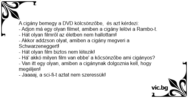 A cigány bemegy a DVD kölcsönzőbe, és azt kérdezi: