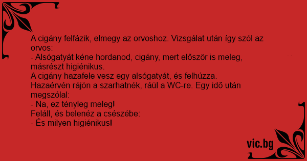 A cigány felfázik, elmegy az orvoshoz. Vizsgálat után így szól az orvos: