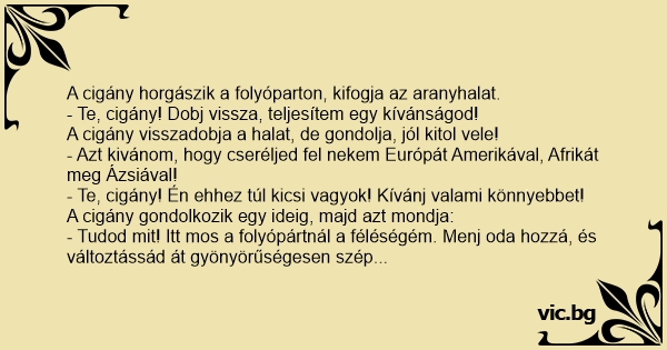 - Te, cigány! Dobj vissza, teljesítem egy kívánságod!