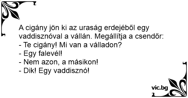 A cigány jön ki az uraság erdejéből egy vaddisznóval a vállán. Megállítja a csendőr: