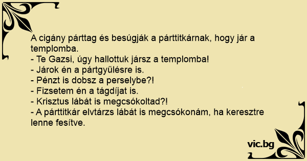A cigány párttag és besúgják a párttitkárnak, hogy jár a templomba.