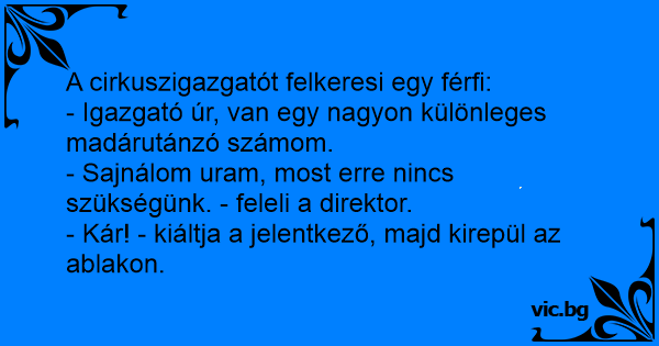 - Kár! - kiáltja a jelentkező, majd kirepül az ablakon.