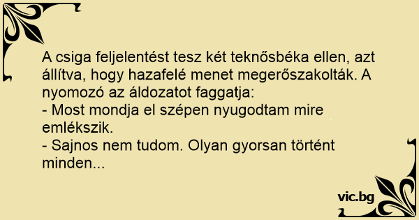 A csiga feljelentést tesz két teknősbéka ellen, azt állítva, hogy hazafelé menet megerőszakolták. A nyomozó az áldozatot faggatja: