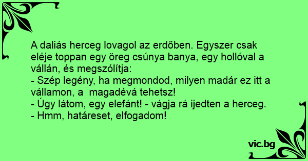 - Szép legény, ha megmondod, milyen madár ez itt a vállamon, a magadévá tehetsz!