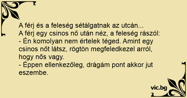 - Én komolyan nem értelek téged. Amint egy csinos nőt látsz, rögtön megfeledkezel arról, hogy nős vagy.