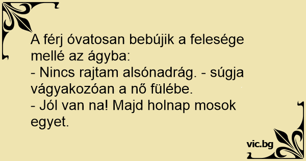 - Nincs rajtam alsónadrág. - súgja vágyakozóan a nő fülébe.