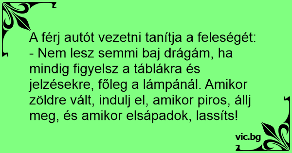 - Nem lesz semmi baj drágám, ha mindig figyelsz a táblákra és jelzésekre, főleg a lámpánál. Amikor zöldre vált, indulj el, amikor piros, állj meg, és amikor elsápadok, lassíts!