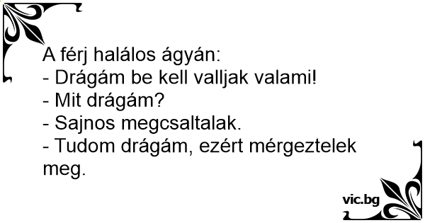 Je ženská na smrtelný posteli a vedle ní stojí její manžel. manželka říká: miláčku něco důležitého ti musím říct. nenamáhej se a nic mi neříkej. ne já musím nemůžu umřít aniž bych ti to neřekla:...