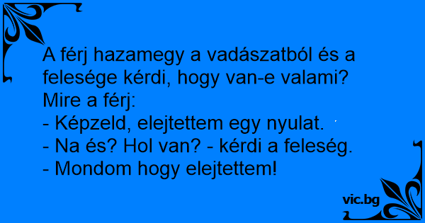 A férj hazamegy a vadászatból és a felesége kérdi, hogy van-e valami? Mire a férj: