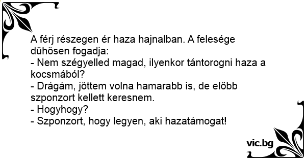 - Drágám, jöttem volna hamarabb is, de előbb szponzort kellett keresnem.