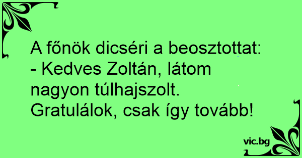 - Kedves Zoltán, látom nagyon túlhajszolt. Gratulálok, csak így tovább!