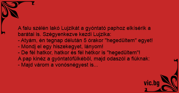 - Atyám, én tegnap délután 5 órakor "hegedültem" egyet!