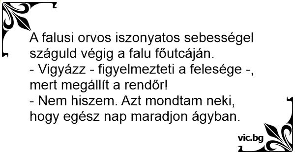 - Vigyázz - figyelmezteti a felesége -, mert megállít a rendőr!