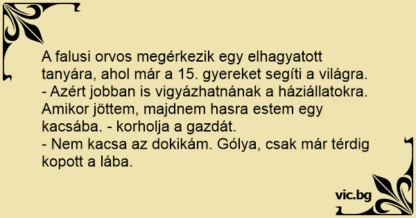 - Nem kacsa az dokikám. Gólya, csak már térdig kopott a lába.