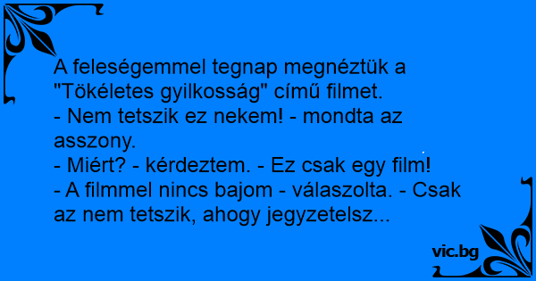 A feleségemmel tegnap megnéztük a "Tökéletes gyilkosság" című filmet.