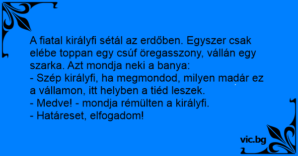 - Szép királyfi, ha megmondod, milyen madár ez a vállamon, itt helyben a tiéd leszek.